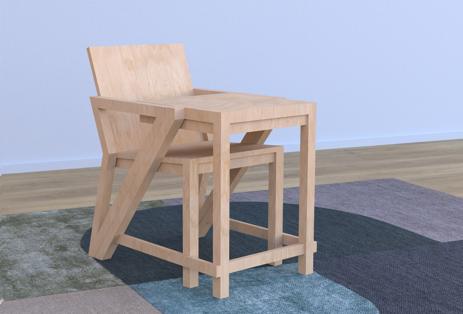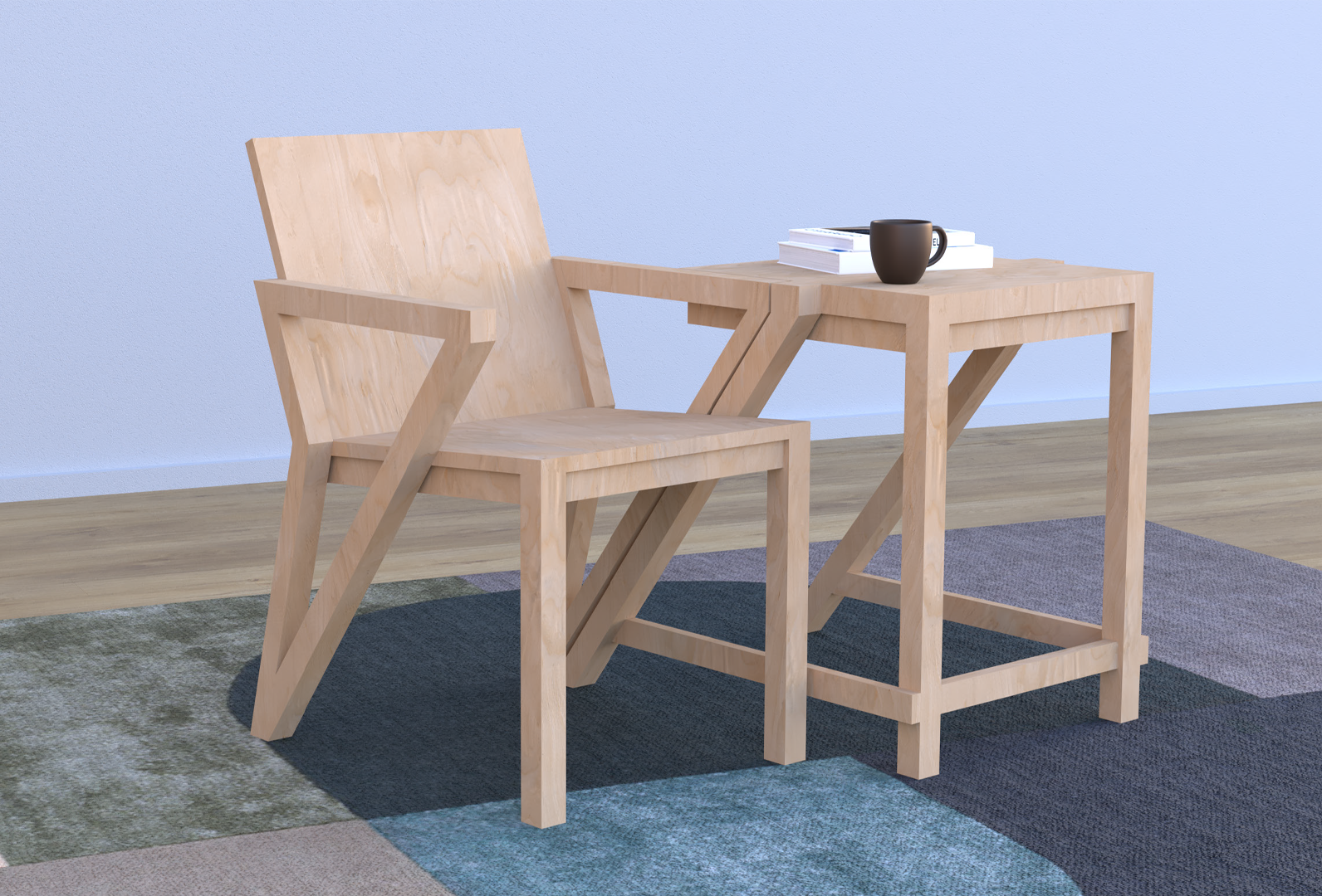 Projekt krzesła oraz stolika pomocniczego wykonanych ze sklejki brzozowej.